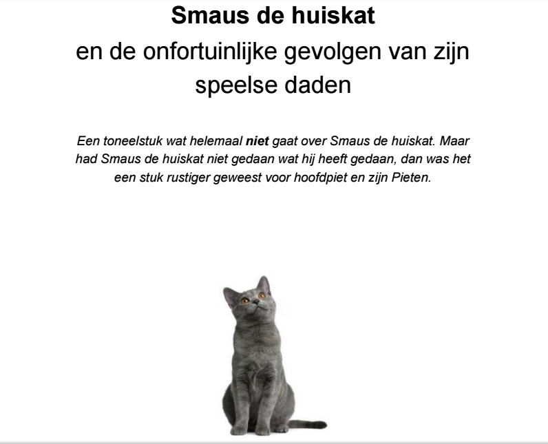 Sinterklaastoneelstuk: Smaus de Huiskat